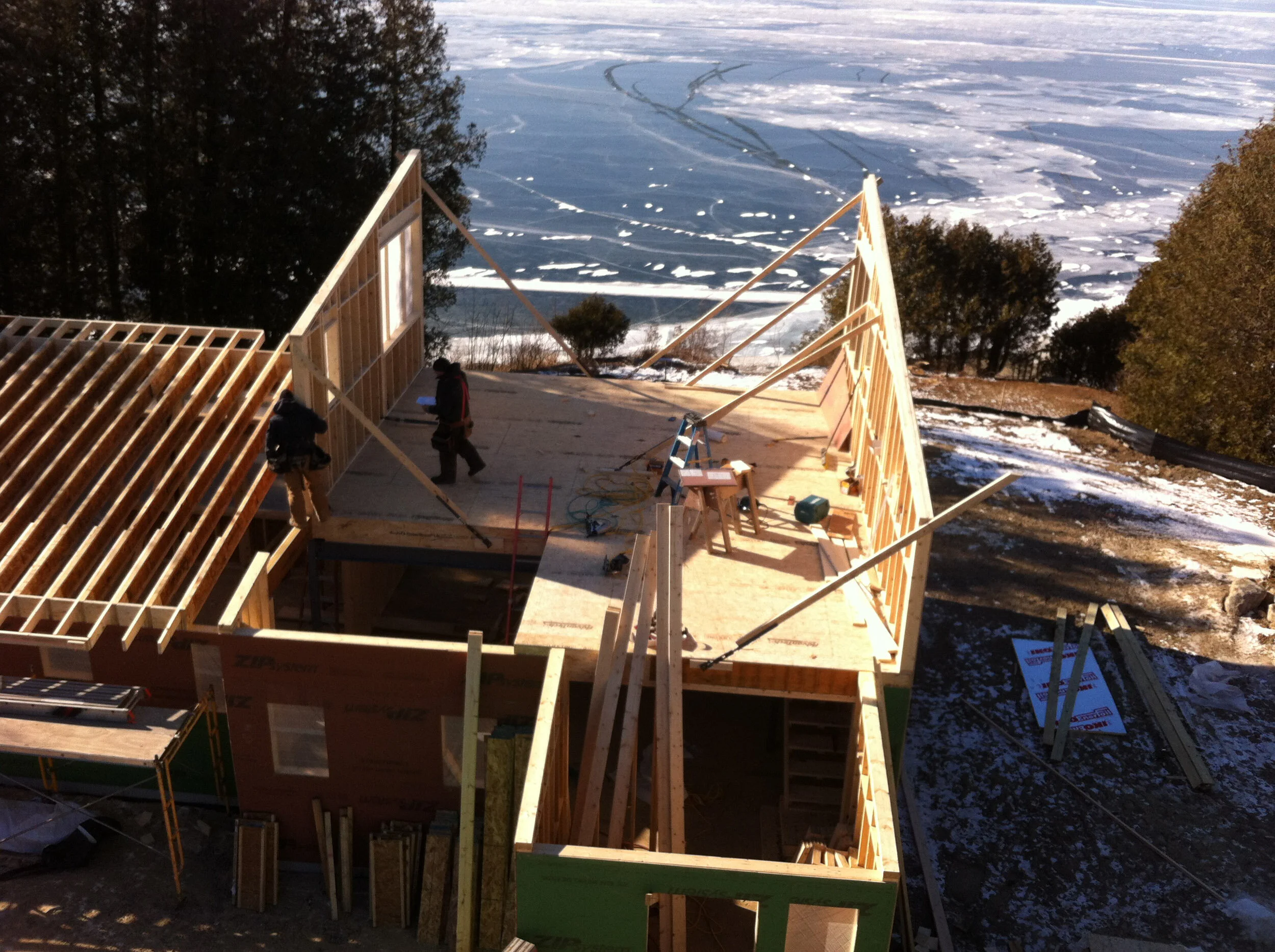 New construction of a Champlain lakefront home in South Hero, Vermont with detached garage featuring 2nd floor 'stripped-down' apartment.